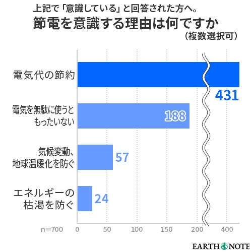 節電を意識する理由として、環境・エネルギー問題を挙げる人はまだ少ない