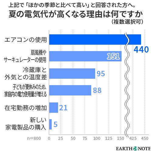 3位は「冷蔵庫と外気との温度差」、4位は「子どもが夏休みのため、家庭内の電力使用量が増える」が続きました。