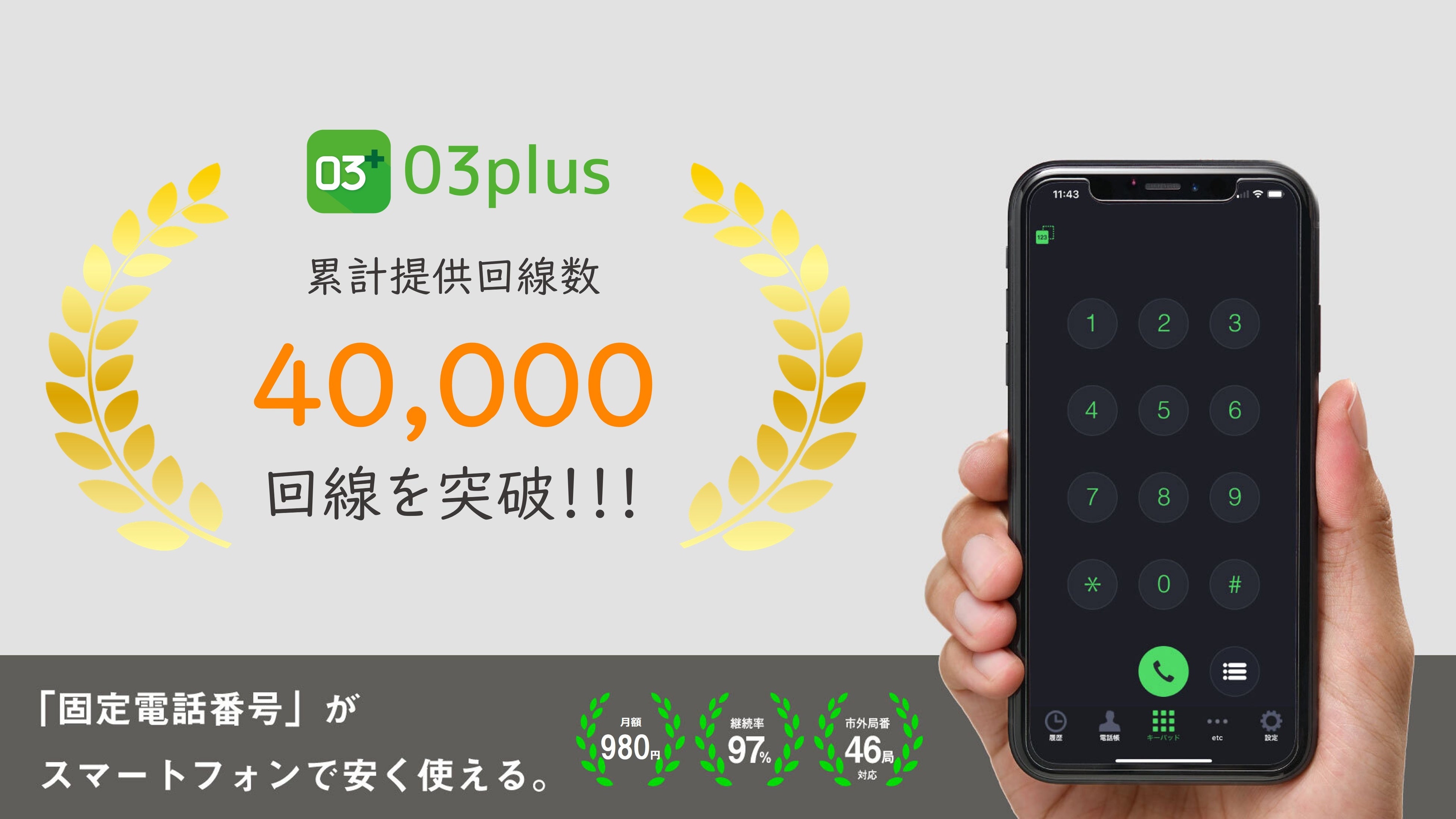 回線工事不要のクラウドPBX「03plus」、提供回線数が累計で40,000回線を突破
