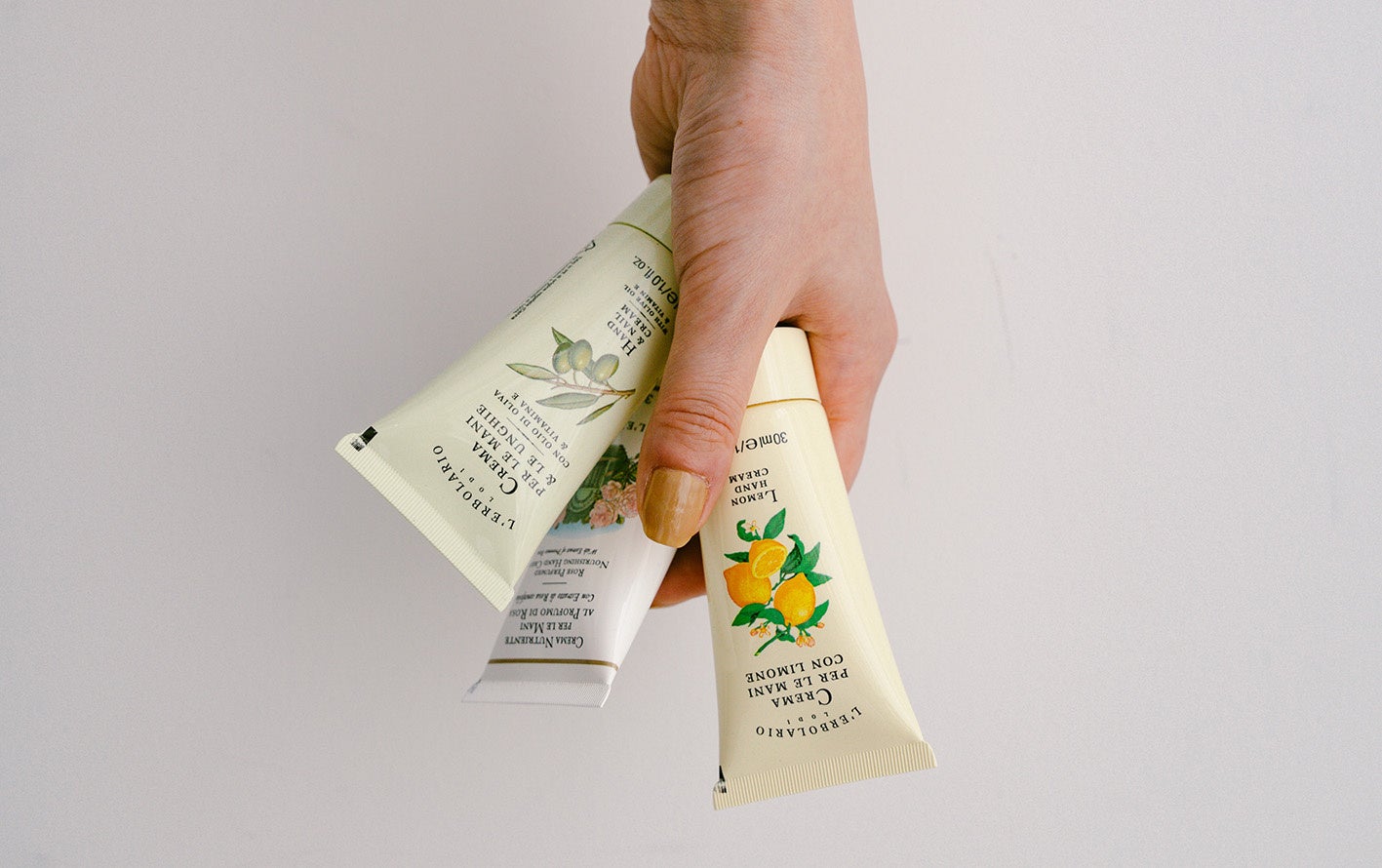 頻繁な洗浄や外的刺激によりストレスを受ける手肌のためのハンドケアコレクション。乾きがちなお肌にみずみずしいうるおいを与え、柔らかくしなやかに整えます。お花や果実のフレッシュな香りが、ハンドケアのひと時を一層心地よく演出します。レモン、ローズ、オリーブの3種類があります。
