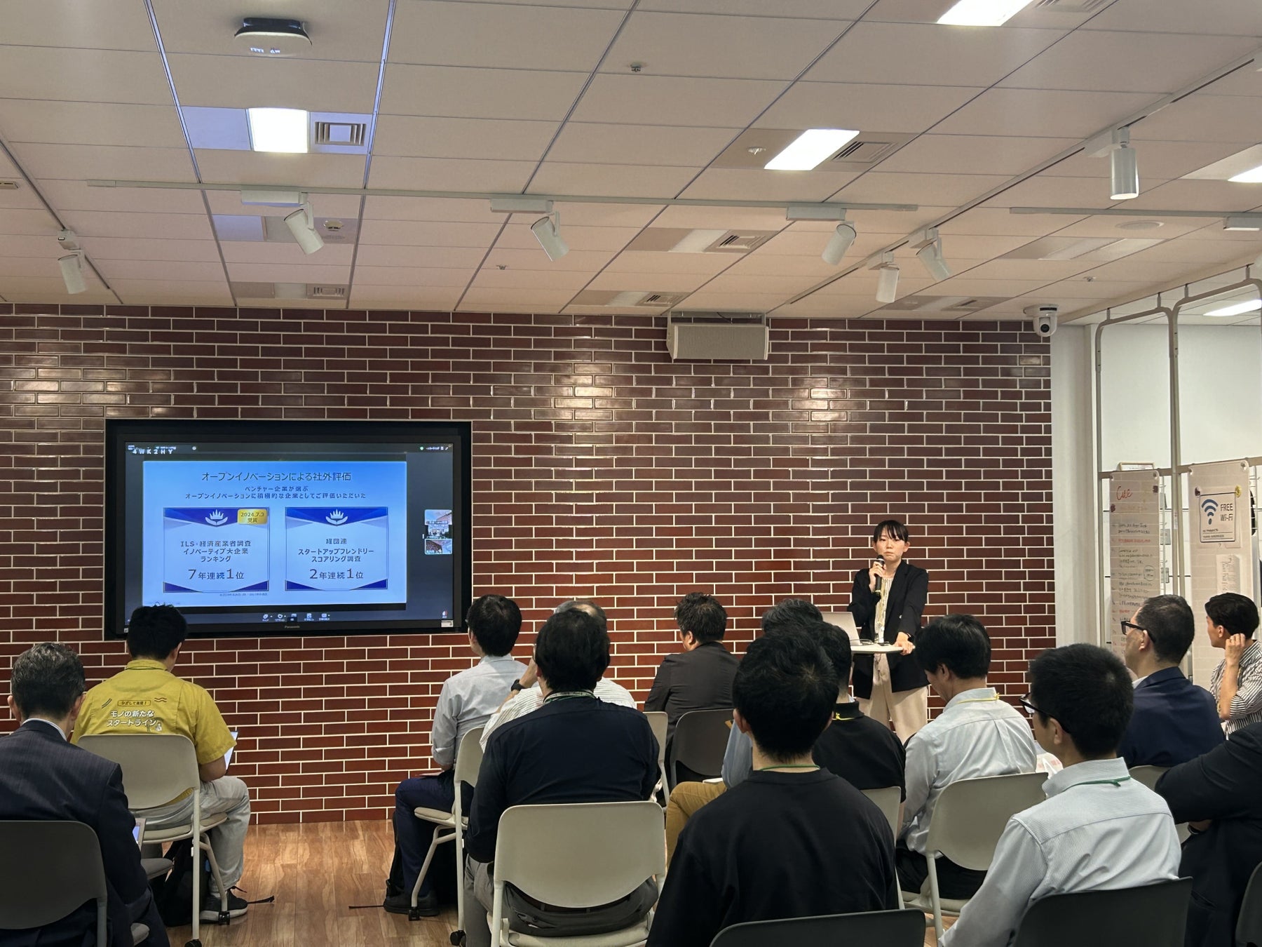 6月27日に大名古屋ビルヂング内オカムラ様の共創空間・Open Innovation Biotope "Cue"のスペースをお借りし、リバースピッチを開催し、オンラインオフライン共に多くの方にご参加いただきました。