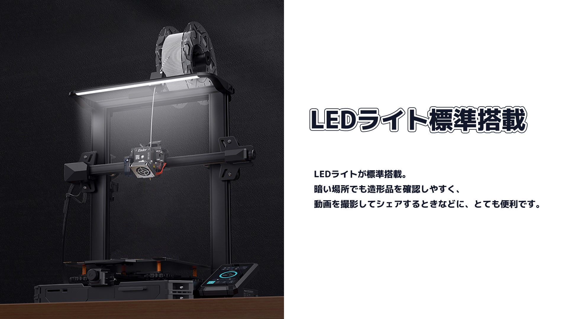 LED搭載・オートレベリング・組立簡単・少トラブルでユーザーフレンドリーな3Dプリンター!