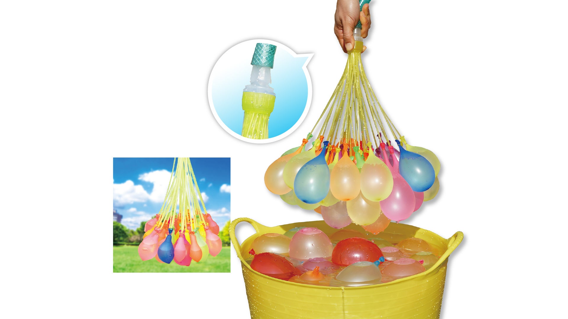 特徴:ホースに繋いで放水するだけで、37個の水風船を一気に作れて楽しい!水風船37個×3本セットで111個の水風船を大量生産♪接続アタッチメント付属で簡単注水。どんどん水を入れて楽しく水遊びしよう!