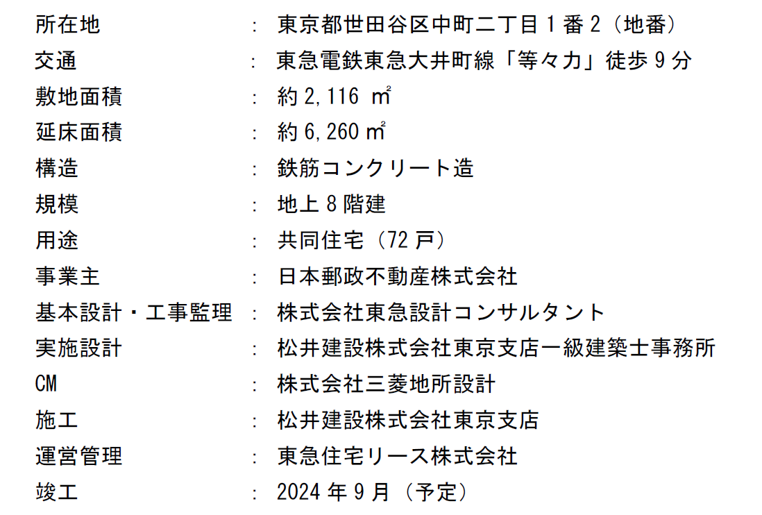 日本郵政不動産株式会社(東京都千代田区、代表取締役社長 山代裕彦)は、東京都世田谷区中町二丁目において、日本郵政グループが所有する不動産の開発事業である「(仮称)世田谷中町二丁目計画」の新築工事に着手したことをお知らせします。