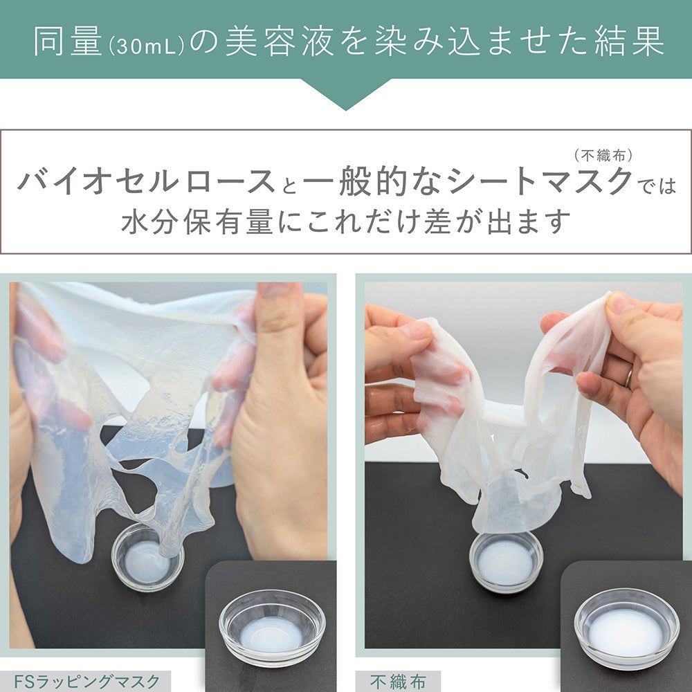 また、本商品に採用しているバイオセルロースは美容成分を肌にしっかり届けるサポートをするだけでなく、密着感・保湿力・美容成分の届けやすく、天然由来に加え、美顔器だけでは不足する要素を補い、より美容効果を高め、心地よく機器と一緒に使っていただける処方を実現しました。
