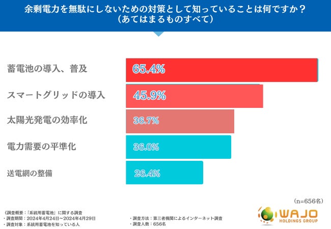 今回の調査では、約4人に3人がこの問題を知っており、その対策として最も多くの人が「蓄電池の導入・普及」を挙げています。
