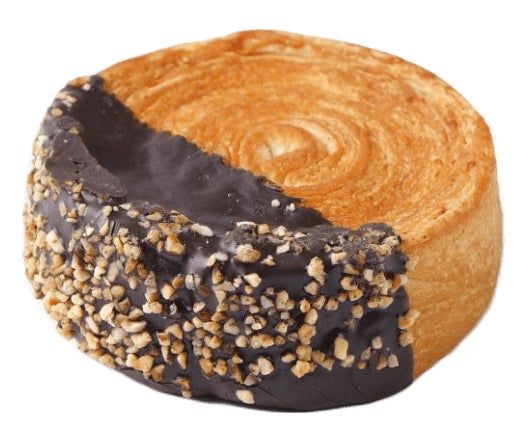 クロワッサン生地にチョコレートペーストをフィリングし、チョコレートとヘーゼルナッツをトッピングしました。