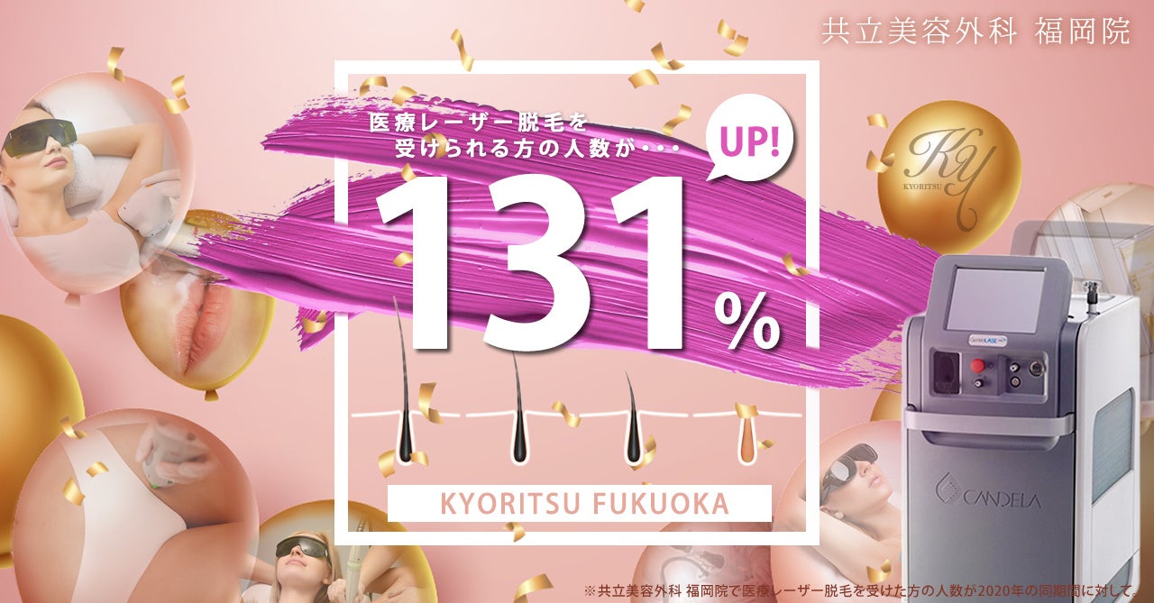 共立美容外科福岡院において脱毛利用者が2020年度比で131%増加