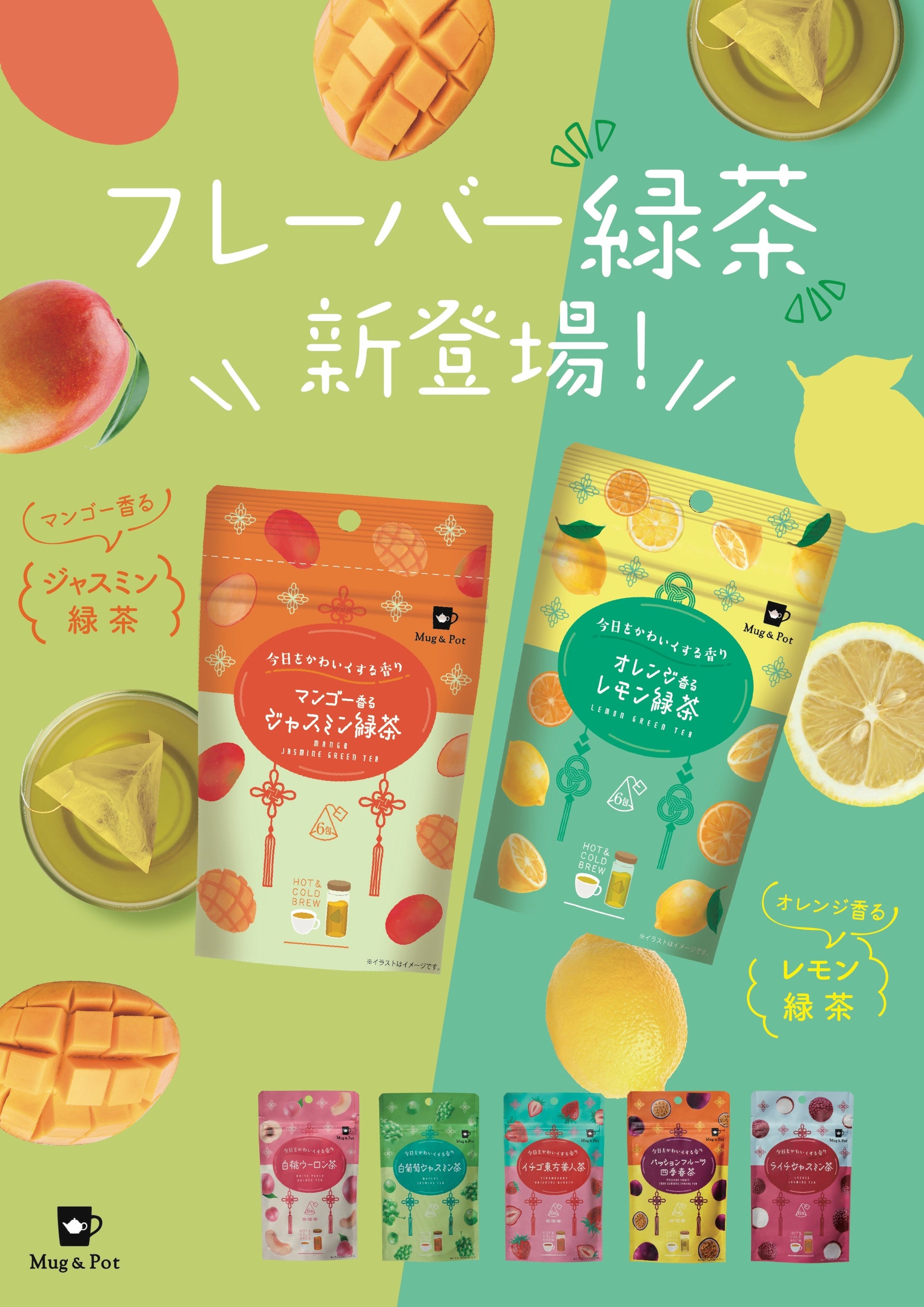 Mug & Potフレーバーティーシリーズ「マンゴー香るジャスミン緑茶」と 「オレンジ香るレモン緑茶」を3月1日(金)より順次販売
