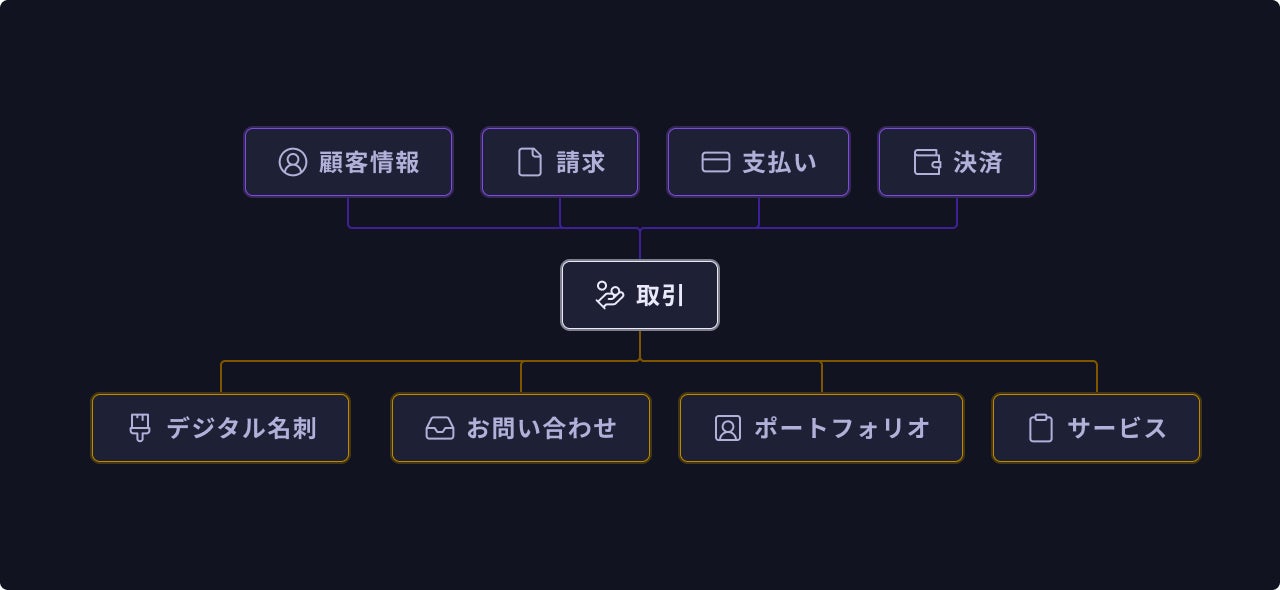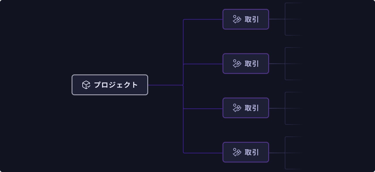 取引を中心にそれぞれのデータを繋ぎ合わせることで、様々なツールの横断によるデータの多重管理構造からの解放を実現します。