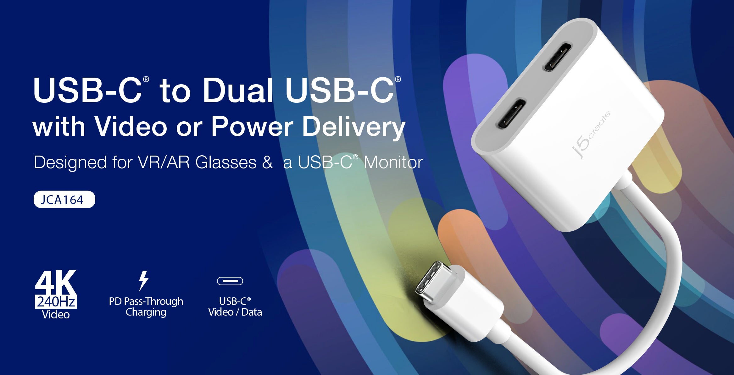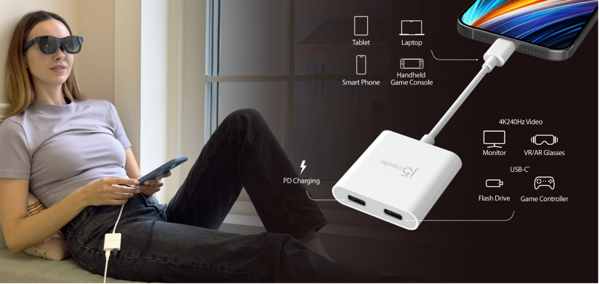 j5create、USB-Cスマートグラスやモバイルモニターにミラーリングできる『USB-C to DP alt mode出力 & PD充電 2in1 変換アダプター JCA164』を9月6日に発売