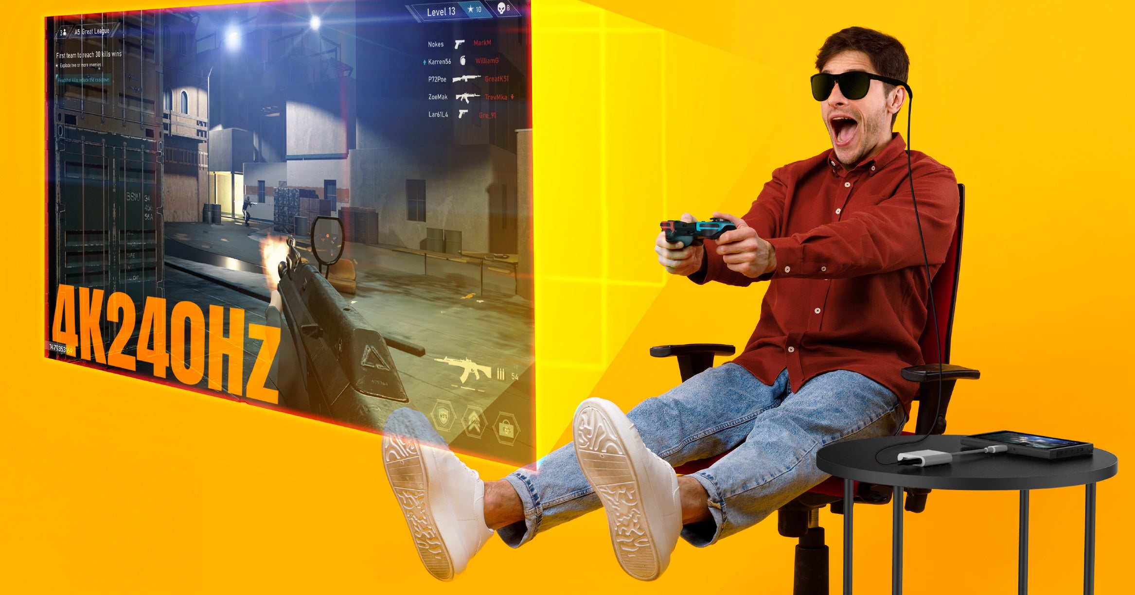 USB-C端末のDisplayPort Alt Mode映像をそのままUSB-Cポートから出力できます。スマートフォンだけでなく、タブレット、ノートパソコン、任天堂SwitchやSteam Deck、ROG Ally Xにも対応しています。最大4K@240Hzの表示解像度をサポートします。