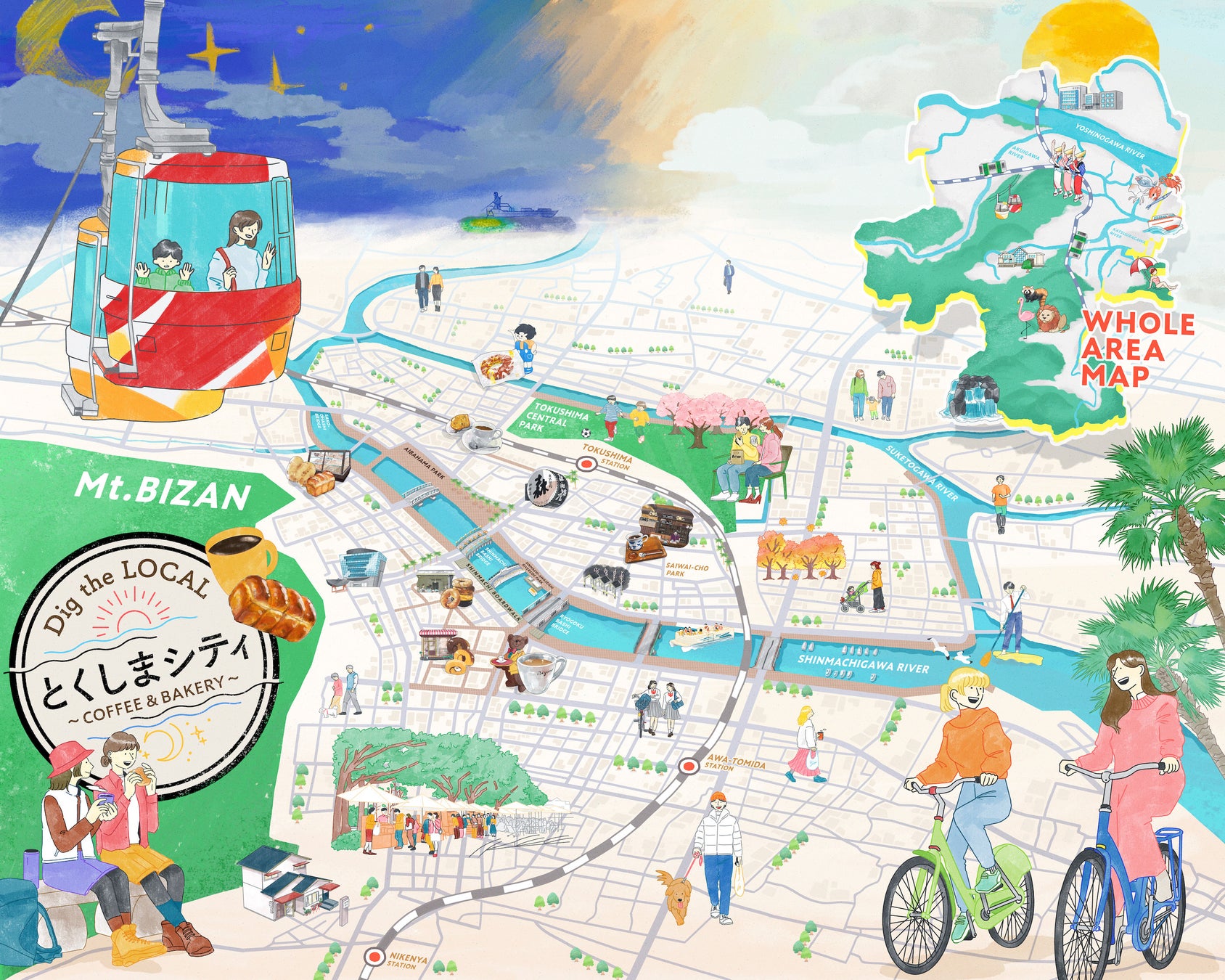 今回はそんな水都・徳島のバラエティに富んだアクティビティと喫茶文化をつなぐ新たな観光体験の提案を目指し、マップメディア「Dig the LOCALとくしまシティ〜COFFEE&BAKERY〜」を公開しました。同時に開催される「ほっこりひとときスタンプラリー」とあわせて徳島市の魅力をご堪能ください。