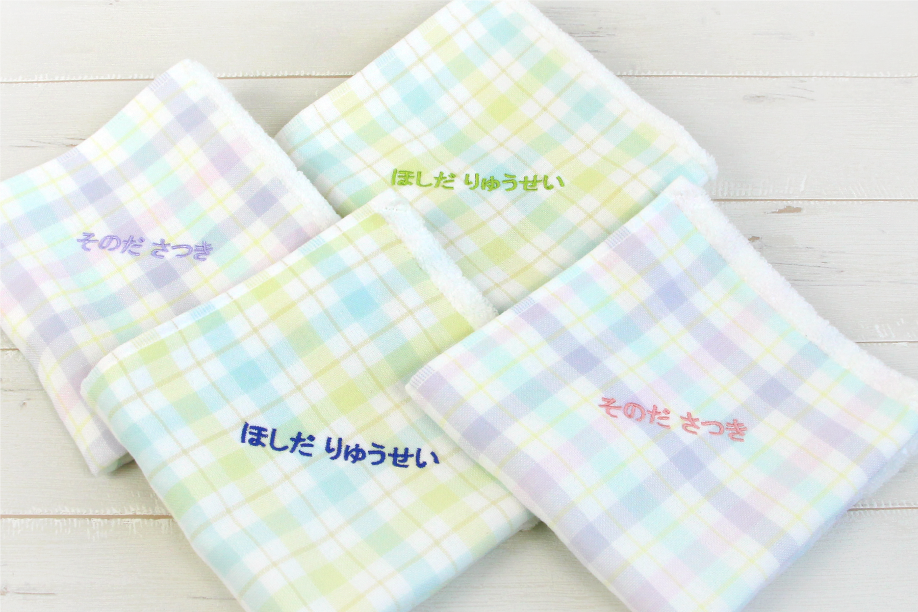 このループタオルは、名前を刺繍するため毎日の洗濯で消えることはなく、大きくお名前が入っているので入れ間違いを防ぐことができます。
