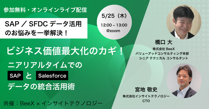【5/25(木)12:00~|BeeX社共催】ビジネス価値最大化のカギ!ニアリアルタイムでのSAPとSalesforceデータの統合活用術