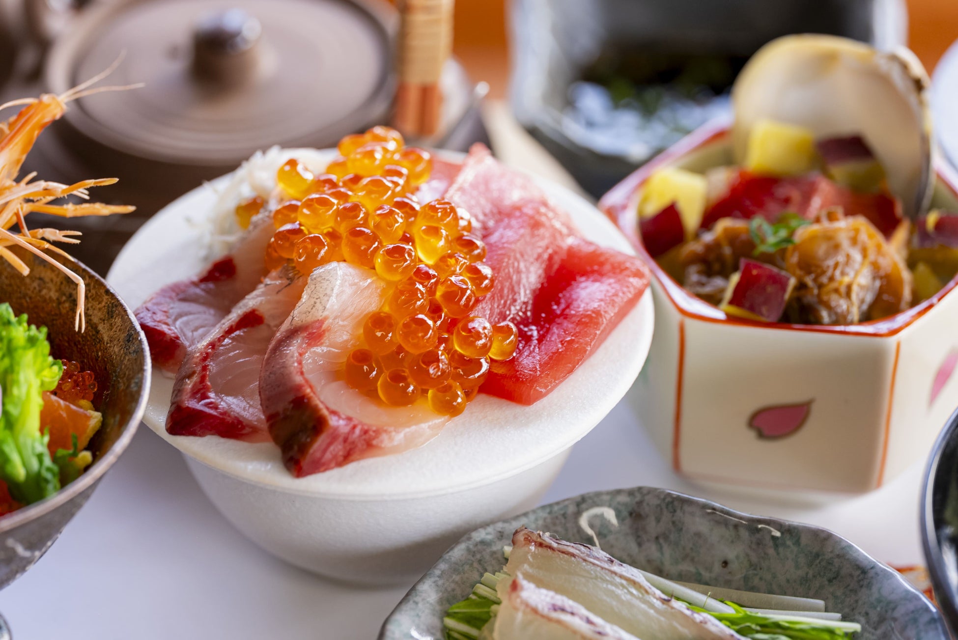 本鮪、カンパチ、しらす、いくらを贅沢に使用した、鮮度抜群の海鮮盛り合わせ。