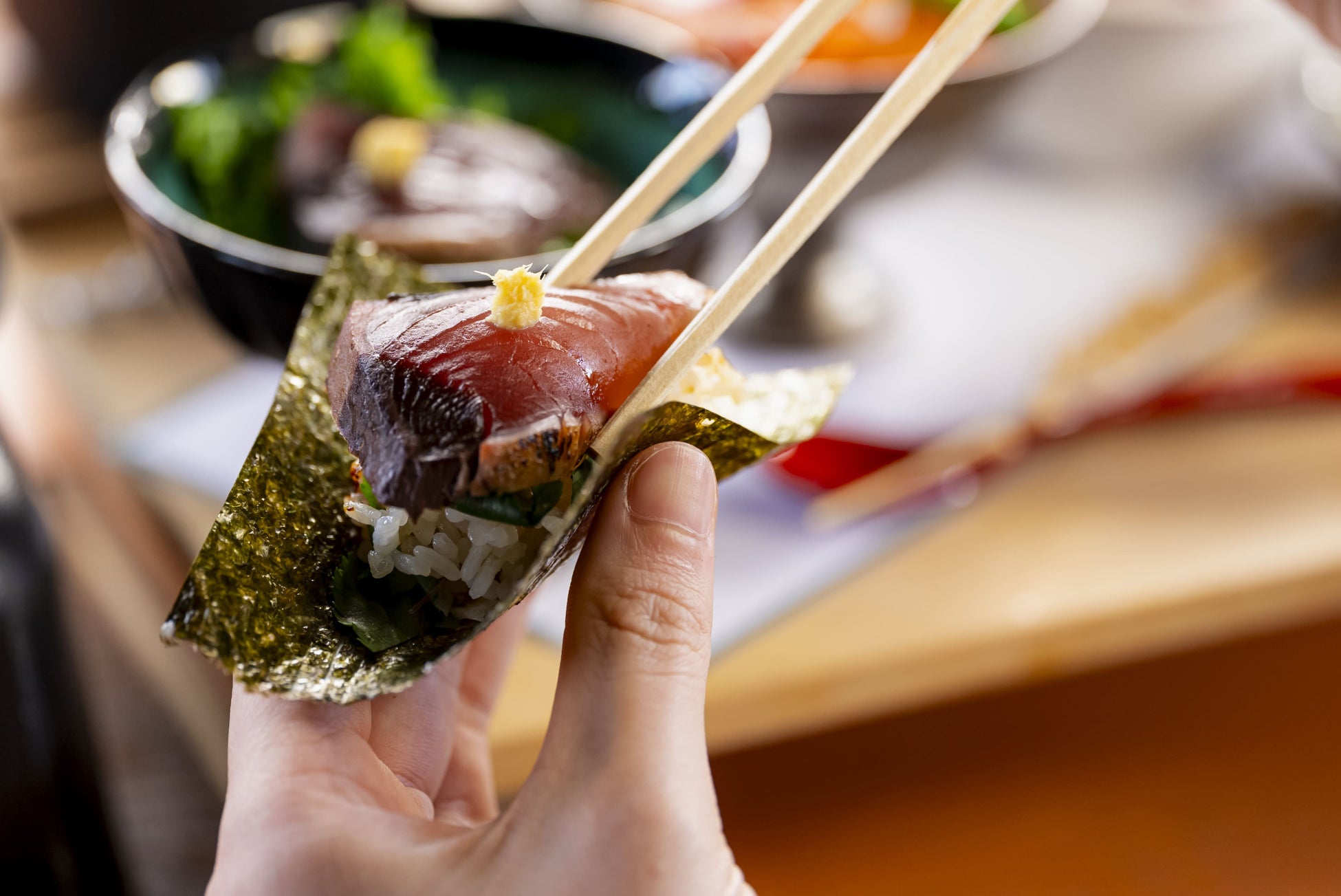 旨みの強い鰹は海苔の香りと相性抜群。