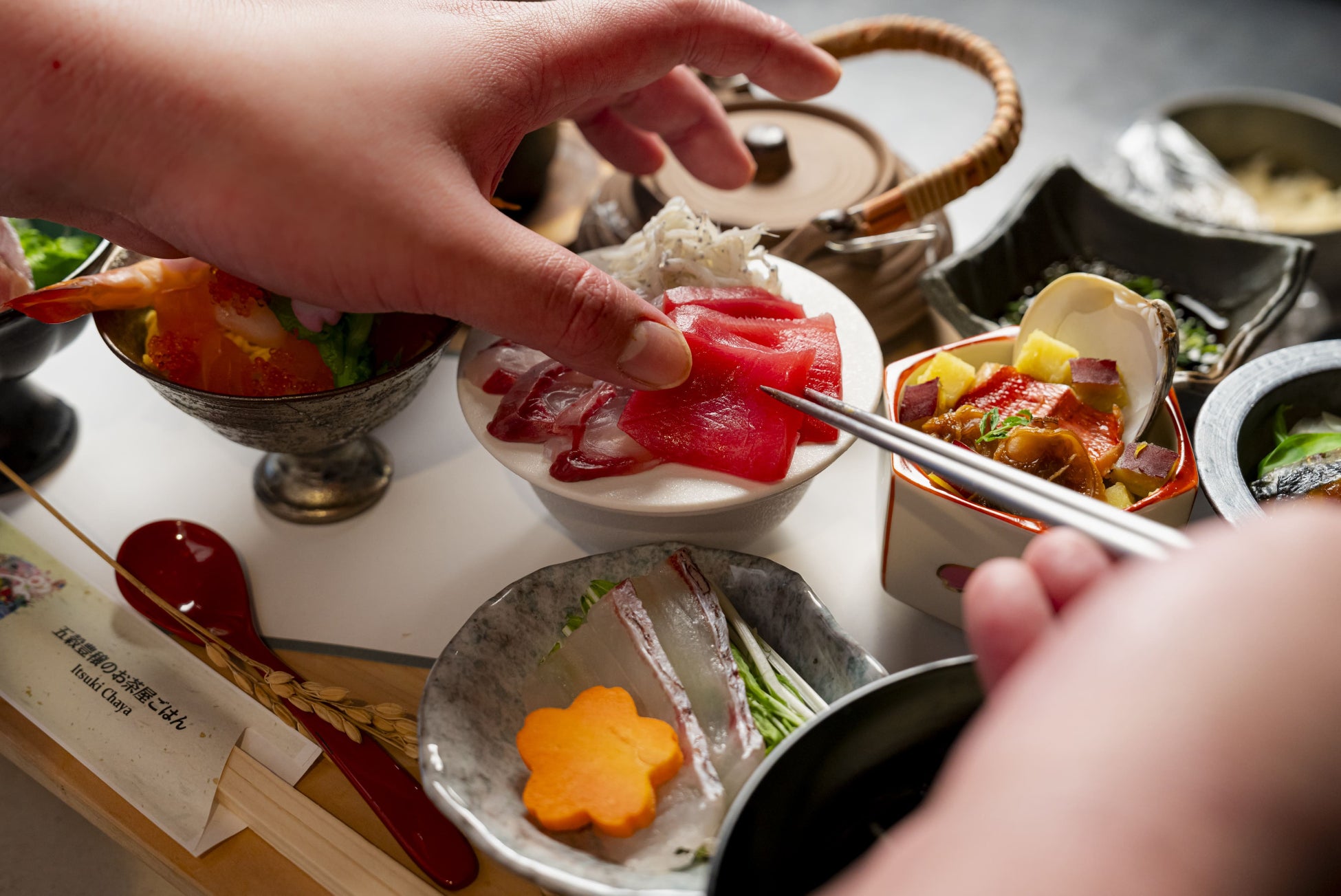 五木茶屋 清水店では京町屋のような空間、トレンド性、海鮮に特化した調理など、春季の京都を五感で体験する新たな丼をお召し上がりいただけます。清水観光の際にオススメできる体験型のお店です。