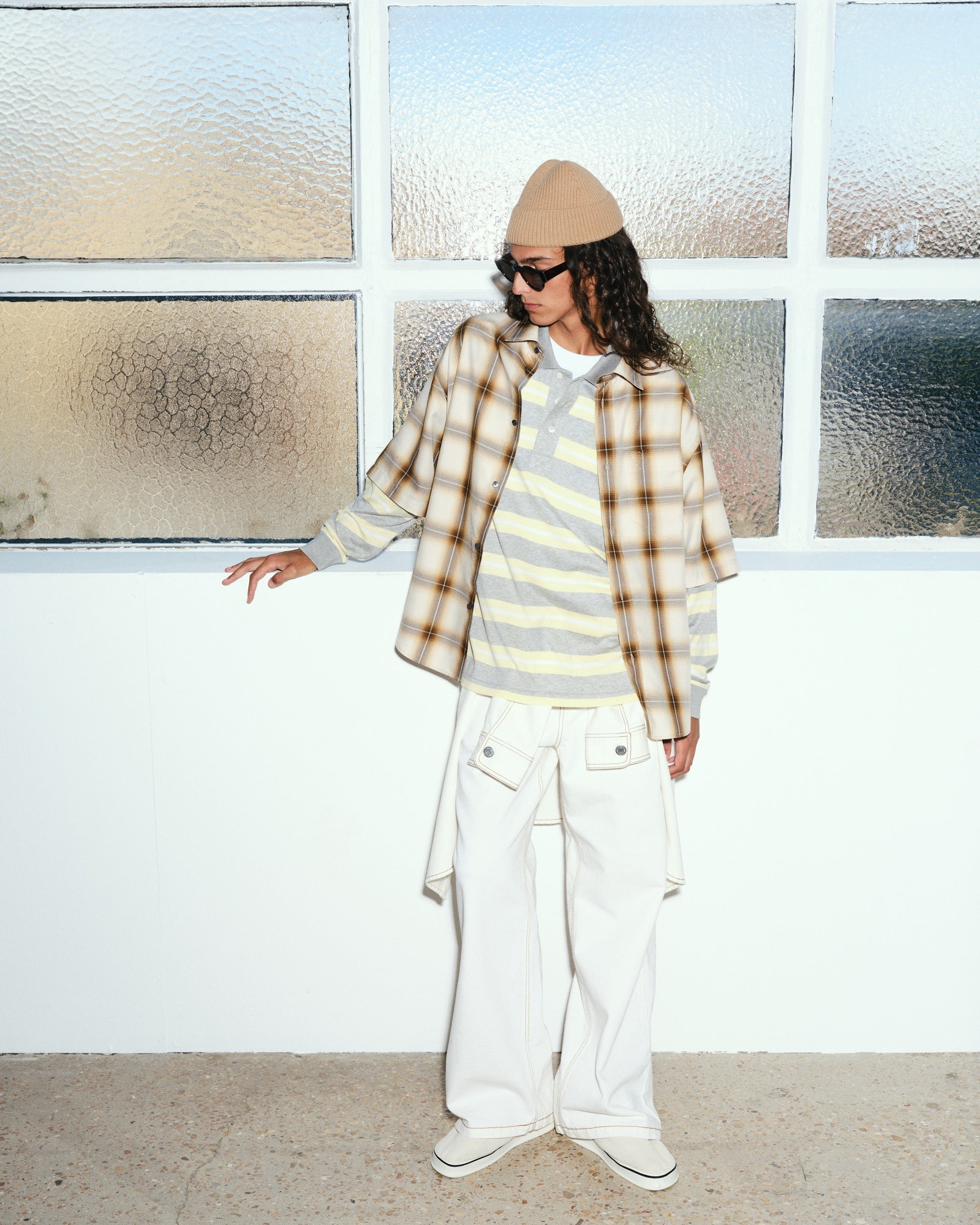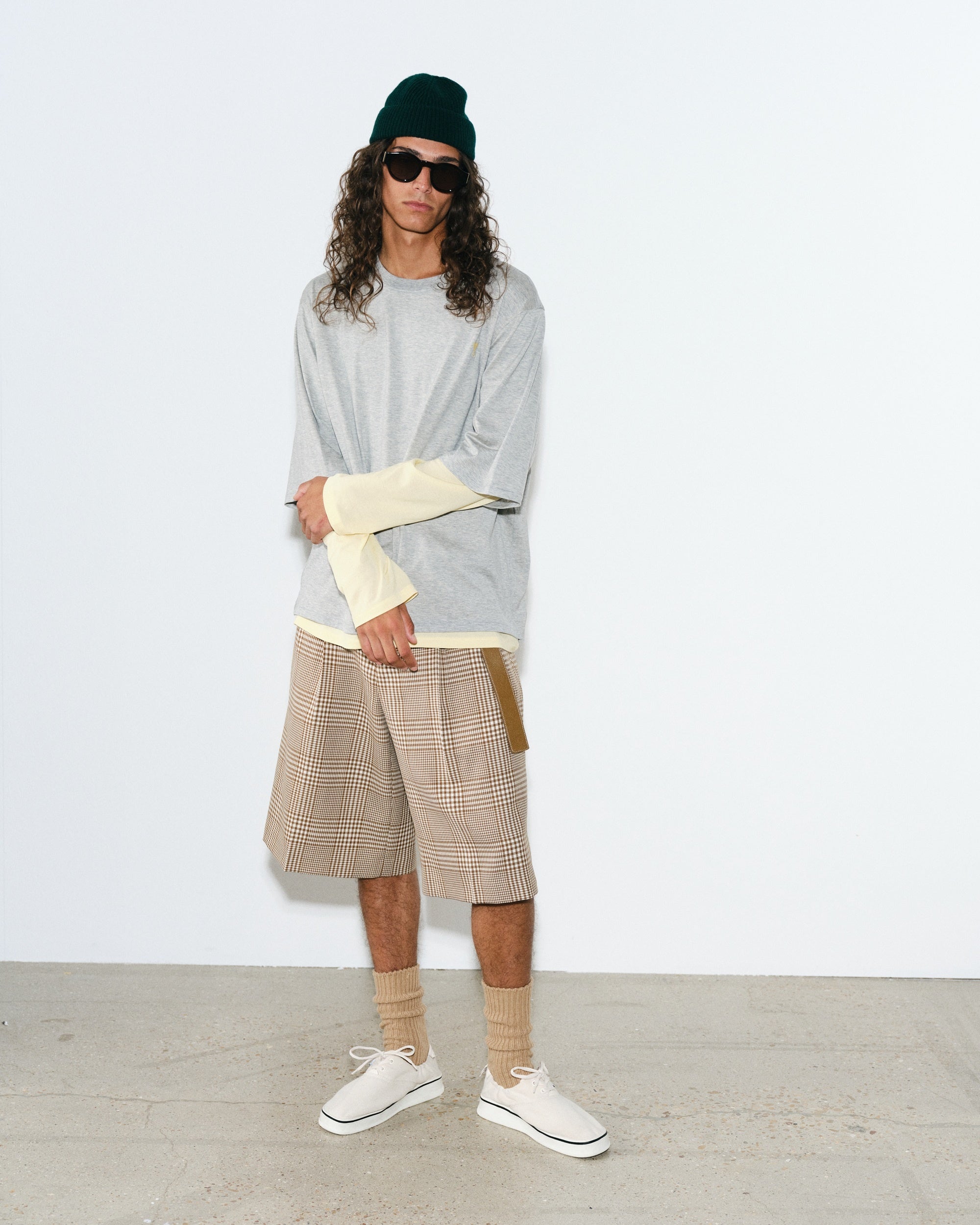 アーガイルニットベスト、カレッジストライプ、再解釈されたチェックやプレイドなど、ヘリテージパターンが美学の核を成しています。ブランドのエッセンスを体現する各ピース、ロングスリーブTシャツやピケポロ、ジャージースウェットに、ワイドレッグショーツやスポーティなパンツを組み合わせることで、それぞれのアイテムが個性を持ちながらも調和し、統一感のあるレイヤードスタイルを実現しています。