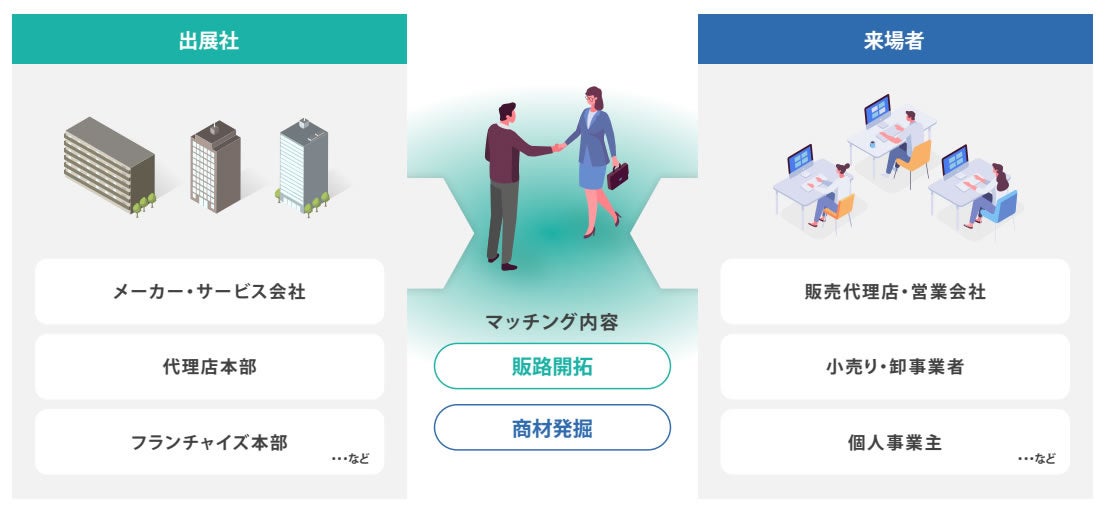 展示会の新しいスタイルとして、オンラインで行う展示会が登場しました。出展社と来場者をインターネット上でマッチング。オンラインだからこそ、無駄なく効率的に販路拡大・商材発掘を実現します。