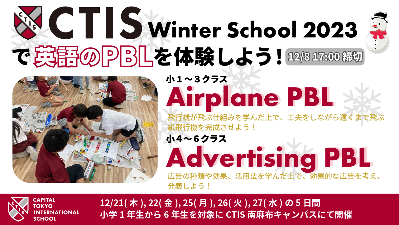 【2023/12/21, 22, 25-27 5日間】CTISが小学1年生から6年生を対象に英語でPBLを体験するウィンタースクールを開講 ※講師情報追加