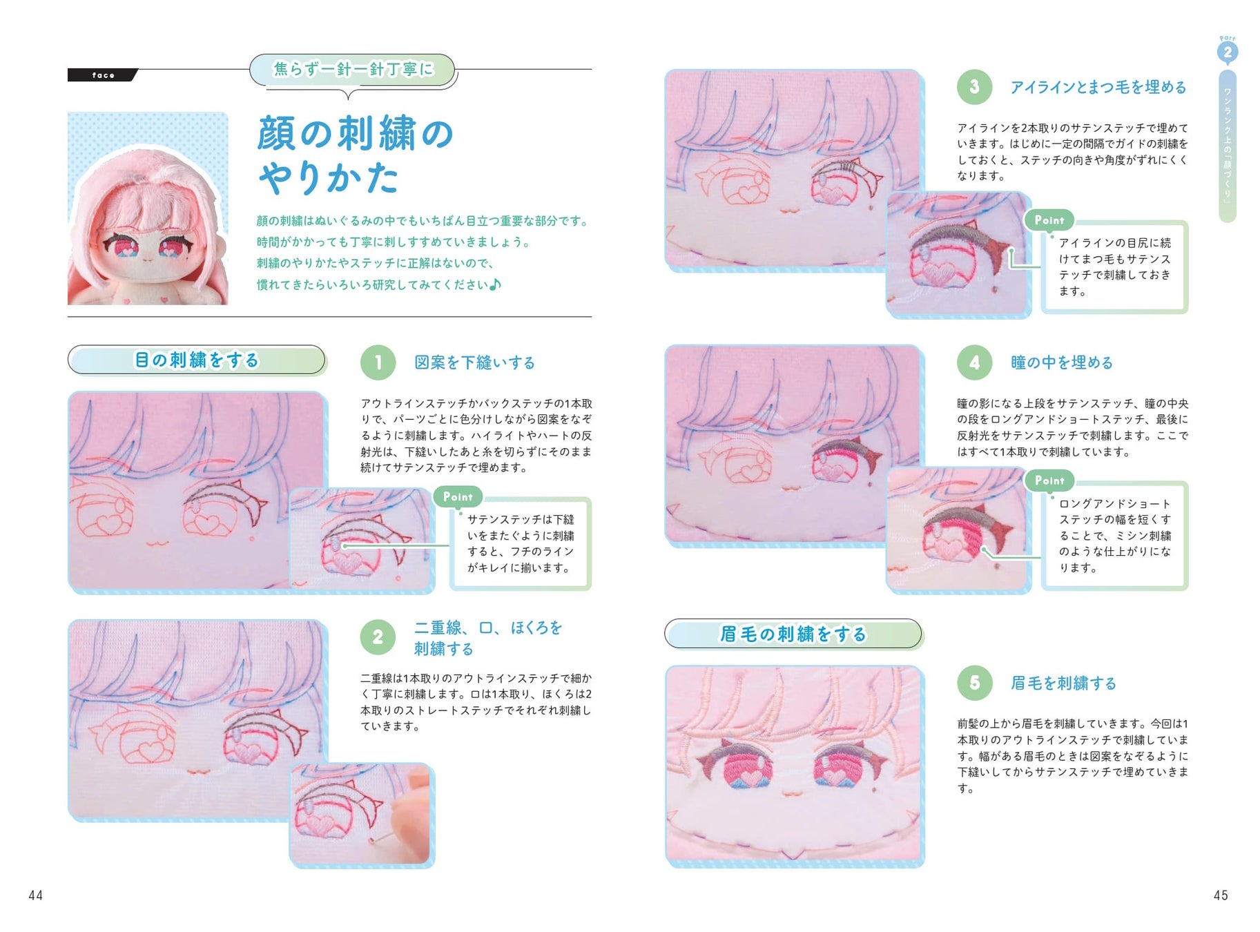 本書は、その推しぬいを自分で作るつくり方を紹介しています。特にぬいづくりにおいて、もっとも重要ながらうまくつくるのが難しいポイントである「お顔」「髪型」を中心に解説しています。かわいいぬいづくりのコツがわかりやすいと話題のYouTuber「ぴよぴっこ」監修、かわいくオリジナリティある刺繍が話題の「しらたま」協力のもと、基本からワンランク上のテクニック、中韓ぬいや、耳づくり、骨入れなどの情報を紹介しています。ぬい作りに必要な型紙もついており、型紙はダウンロードも可能と、細部にわたり読者のニーズに応える仕様となっております。