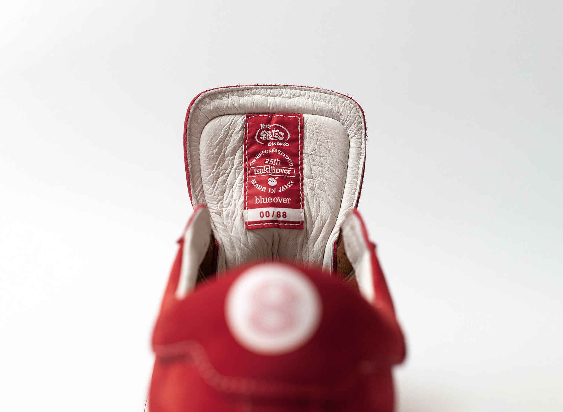 銀だこが実際に使用するたこ焼を焼く鉄板の配列を基に作り上げたタコヤキソールを、「築地銀だこ」が25周年に合わせて国産スニーカーブランド「blueover」と作成。シリアルナンバー入りのオリジナルネーム入りで、88名に当たるTwitter上のプレゼントキャンペーンも併せて開始する。