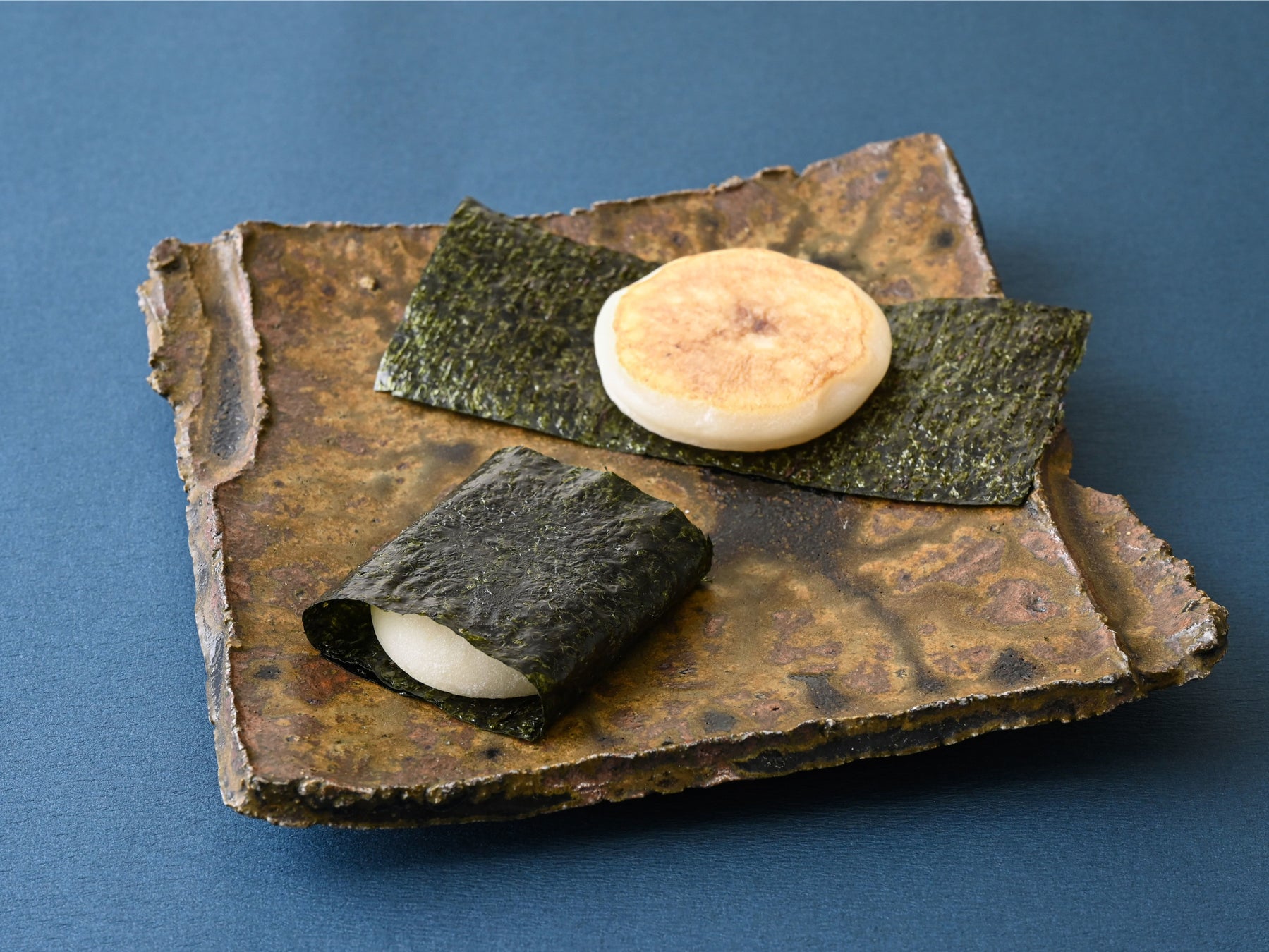 にんべんのだしと鰹節、山本海苔店の海苔、榮太樓總本鋪のマンゲツモチを組み合わせた人気商品「日本橋餅」。創業祭期間限定で、ごま油をひいた実演厨房内の銅板で軽く焼いた餅に、焼き立て海苔を巻いてご提供いたします。出来上がりに少しお時間を頂戴しますが、特別な味わいをお楽しみいただけます。