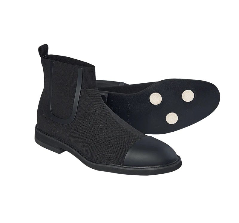 エレガントな足元を演出するサイドゴアブーツ。接合ラインに樹脂パーツを圧着し、足首を包み込むようなパターンで作り上げました。通常はゴムを使用する履き口のサイドには撥水加工したニット素材を使用。モダンですっきりとしたラスト(木型)を使用しながらカジュアルにも合うラウンドタイプに仕上げており、ビジネスからカジュアルまで幅広いスタイリングに対応します。