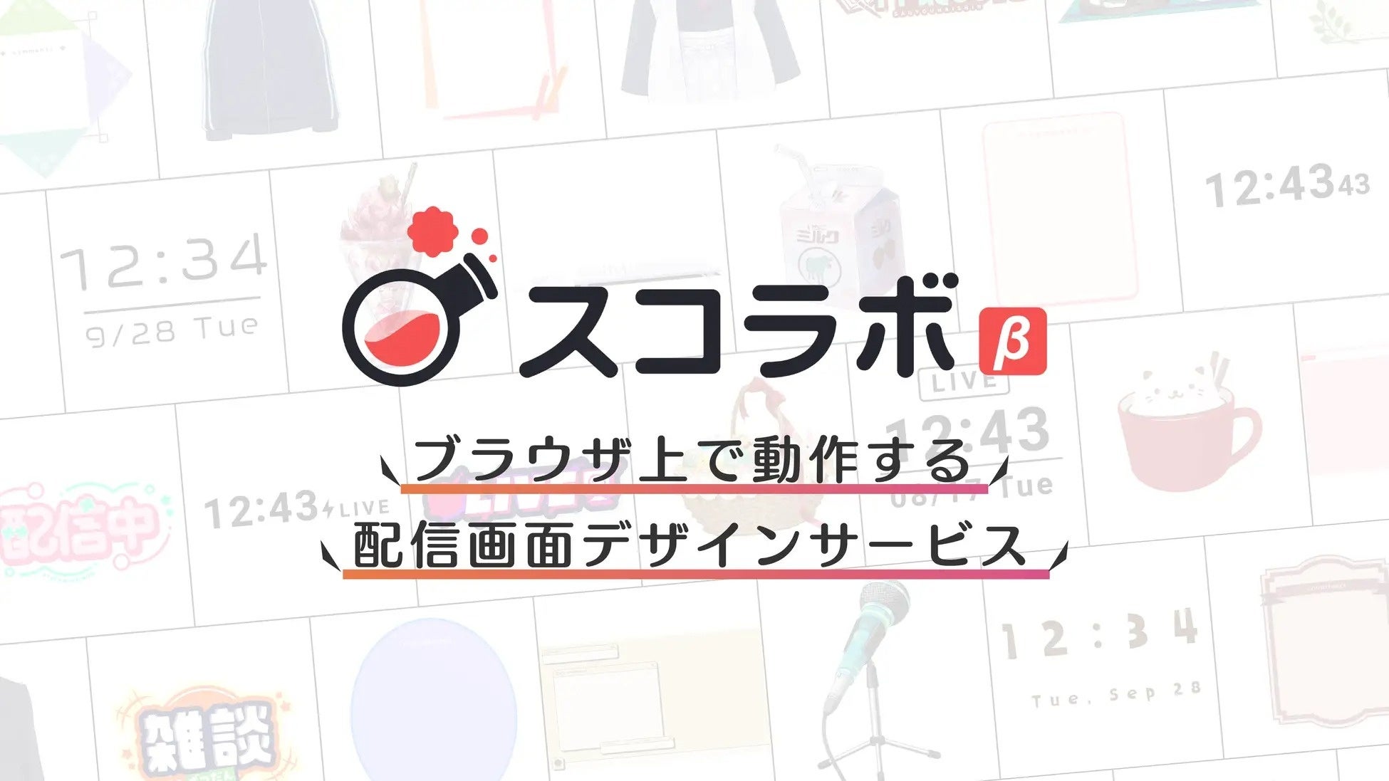 スコラボは、ブラウザ上で動作する配信画面デザインサービスです。現在オープンβテストとしてサービス公開中。4000点以上の素材を無料で配信などに利用することができます。