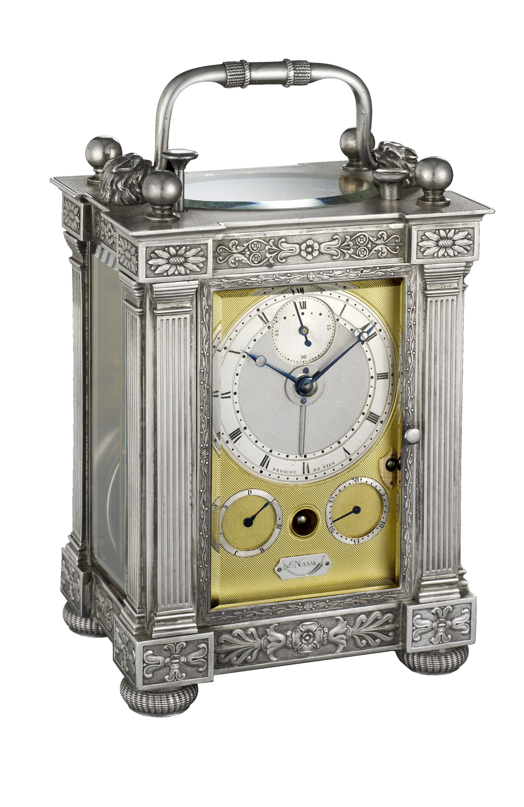 今回日本で展示されるアンティークピースの中には、ブランドの創始者アブラアン-ルイ・ブレゲが生涯で制作したトゥールビヨン35個のうちの1個、No.2567も含まれます。またナポレオン軍を打ち破った帝政ロシア軍の指揮官の一人、セルジュ・ガリツィン公爵が所有していたトラベルクロックNo.3358も特別なピースです。このトラベルクロックは、無垢の銀で作られた数少ない作品のひとつで、ガリツィンは1826年にこのアラーム付きハーフクォーターリピーター トラベルクロックを購入しています。