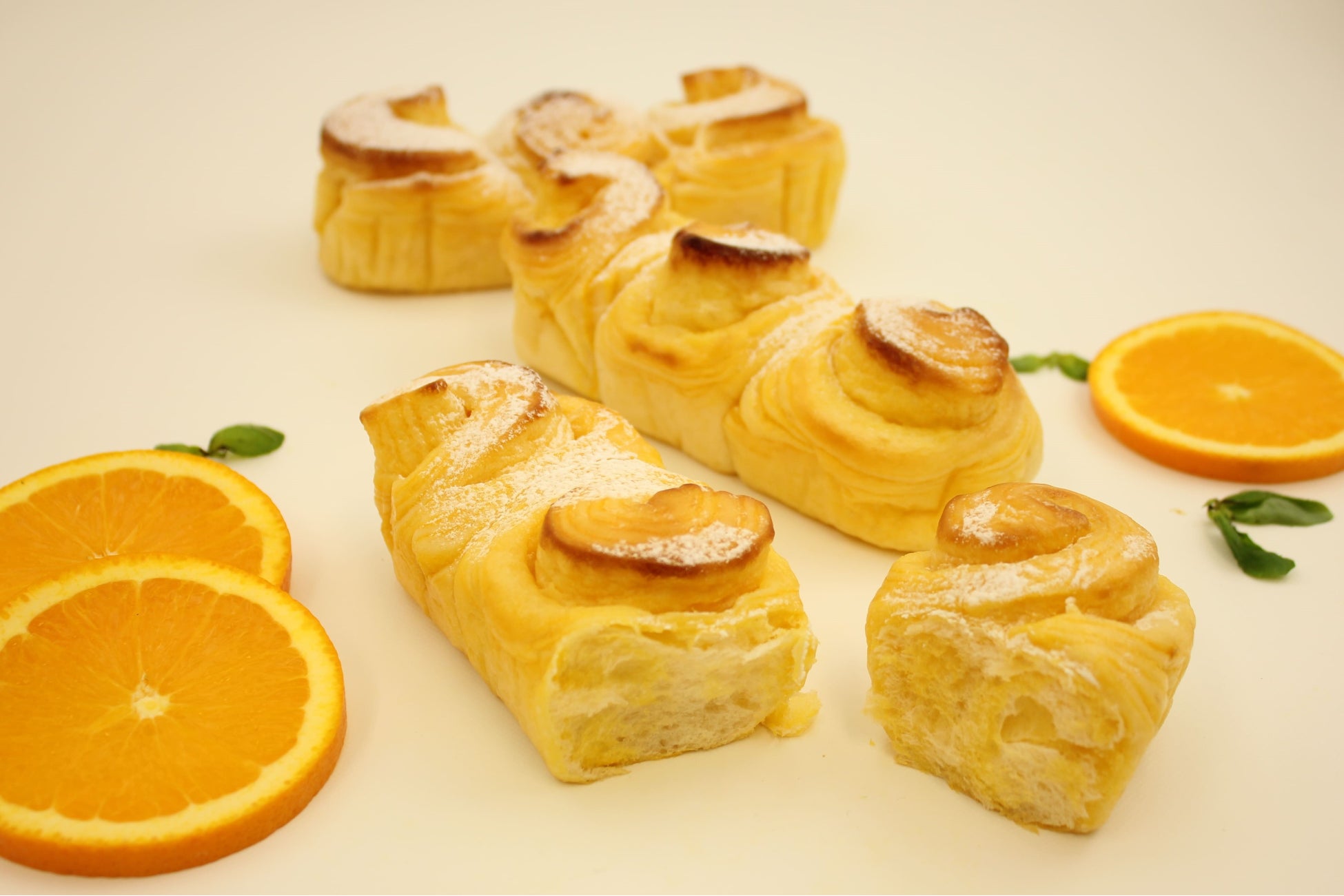 温州みかん果汁入りのクリームを折り込んだ生地にカスタードクリームを巻き込み、食べやすいちぎりパン風に焼き上げました。一口ごとに甘酸っぱい香りが広がります。