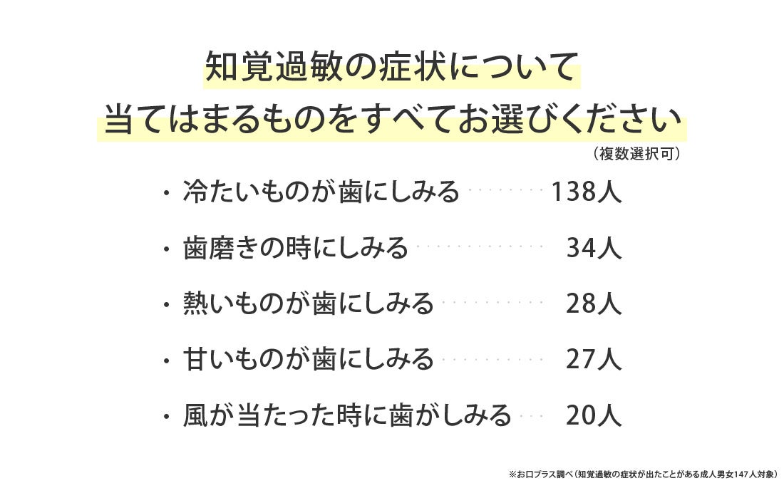 知覚過敏の症状経験者は7割超、最多は「冷たいものがしみる」|症状があっても歯科受診は約3割にとどまる実態(お口プラス調べ)