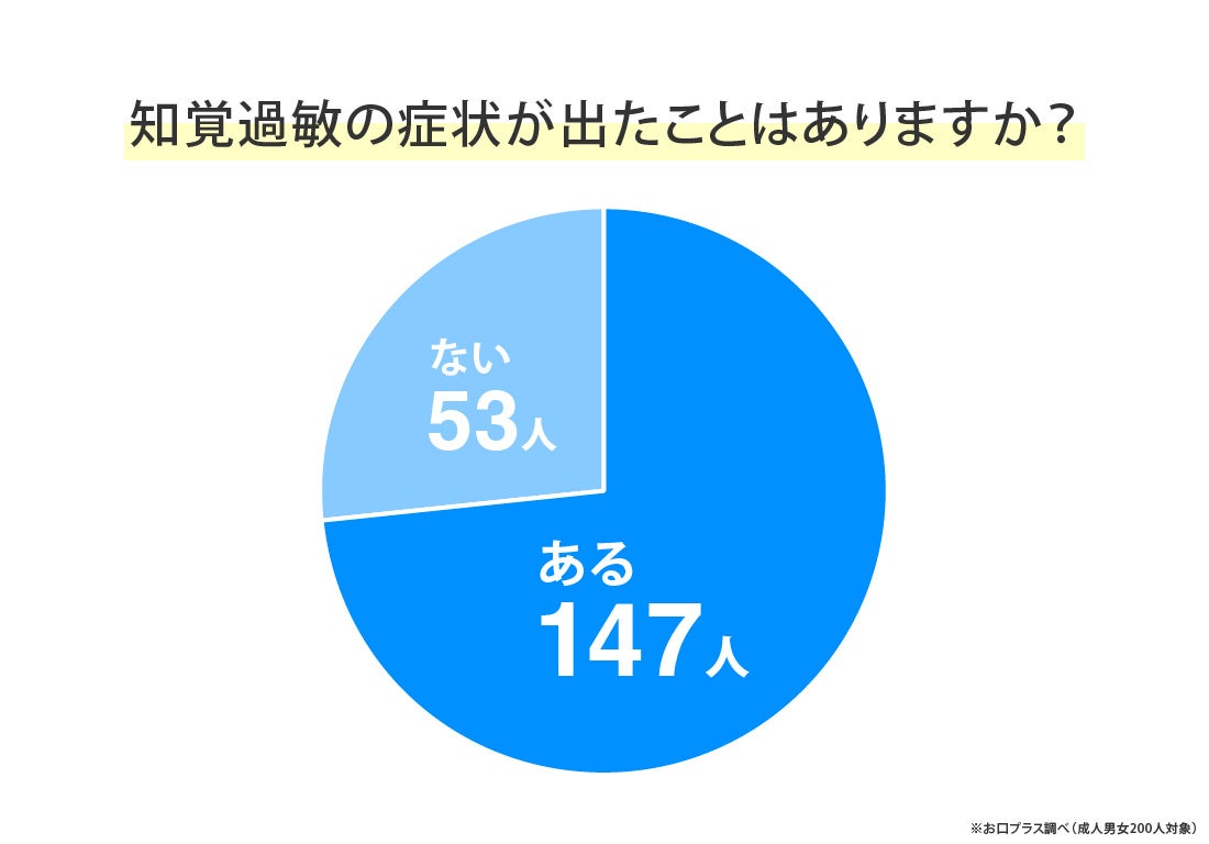 未体験の心地よい施術を提供する歯科医院 一般社団法人お口プラス(https://okuchiplus.jp/)は、成人男女200人を対象に「知覚過敏」に関するアンケート調査を実施しました。