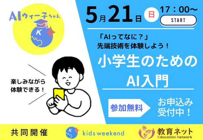 【オンライン授業共同開催】本格普及直前!子どものための楽しく安全なAI入門授業を、キッズウィークエンドと教育ネットとの協業にて開催決定