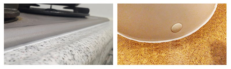 ▲ガスコンロ周りのスキマ(左)やトイレ便器と床のスキマ(右)などに使用可能