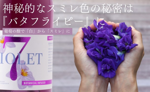 ヴァイオレットセブンはスミレ色をしていますが、合成着色料・香料・甘味料が一切使用されていません。スミレ色の秘密は「花」にあります。