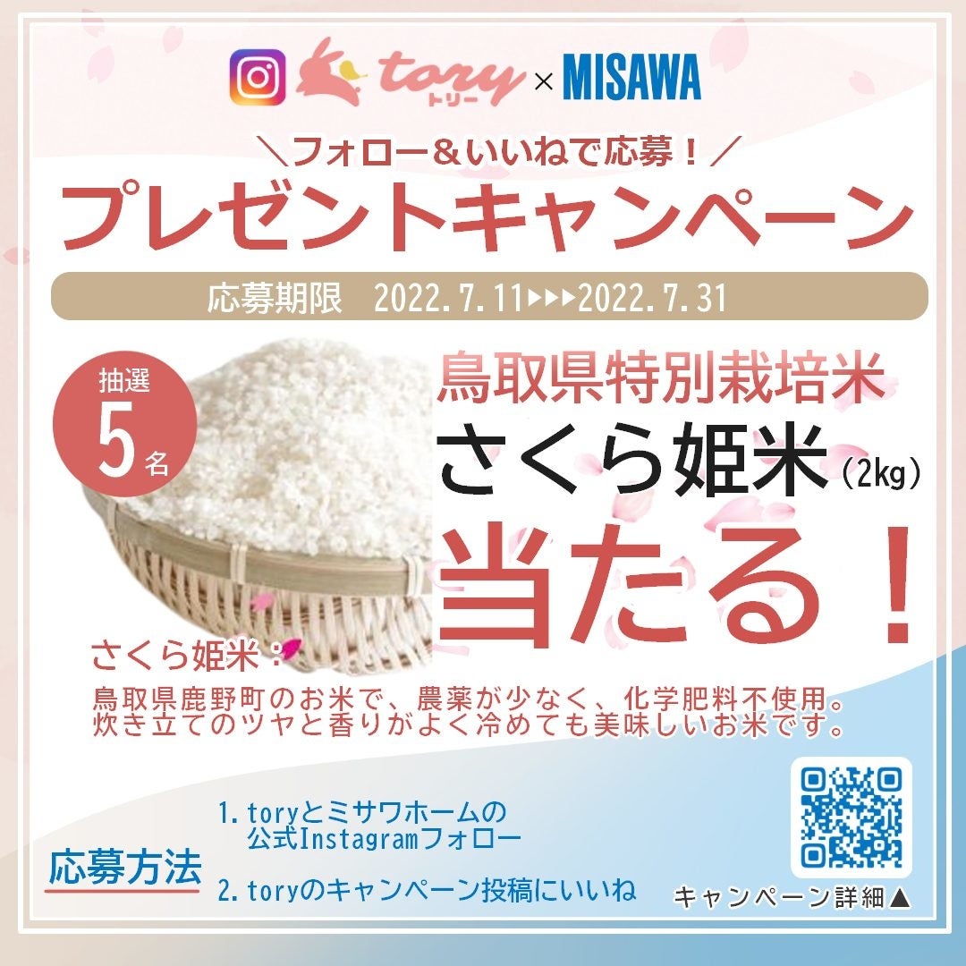 抽選5名様に、鳥取県の特別栽培米「さくら姫米」をプレゼントします✨