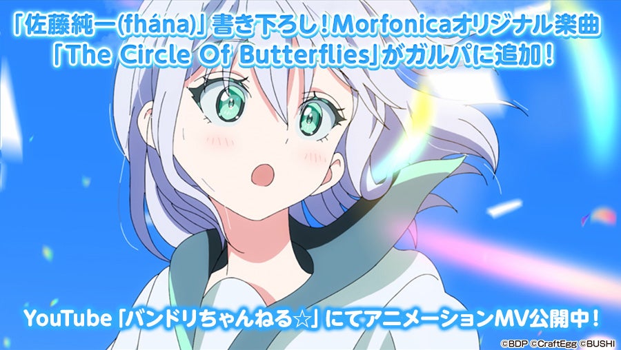 佐藤純一(fhána)さんからMorfonicaへの提供楽曲『The Circle Of Butterflies』を本日ガルパに追加!アニメーションMV(フルサイズver.)はYouTubeにて公開!