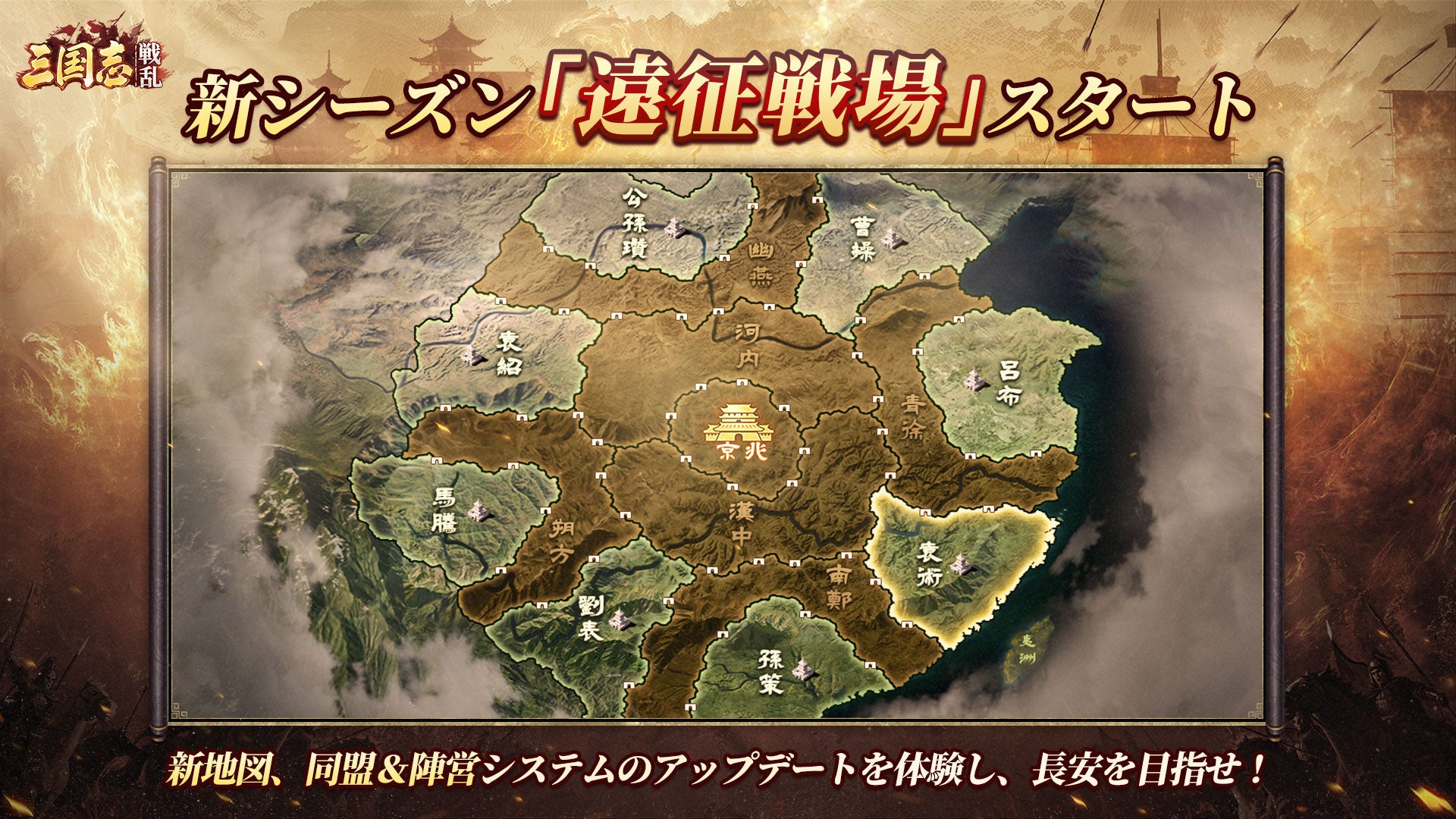 『三国志:戦乱』新しいシーズン「クロスサーバー遠征戦場」と共に、「長安争奪戦」も激戦開始!最高750万円相当の報酬は1位の連盟が獲得可能!