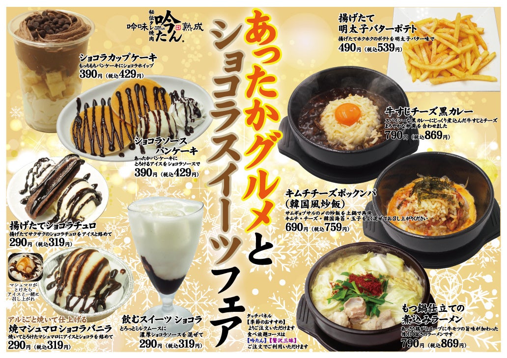 愛知県瀬戸市【秘伝タレ焼肉 吟味熟成 吟たん】-あったかグルメとショコラスイーツフェア-12月7日スタート!