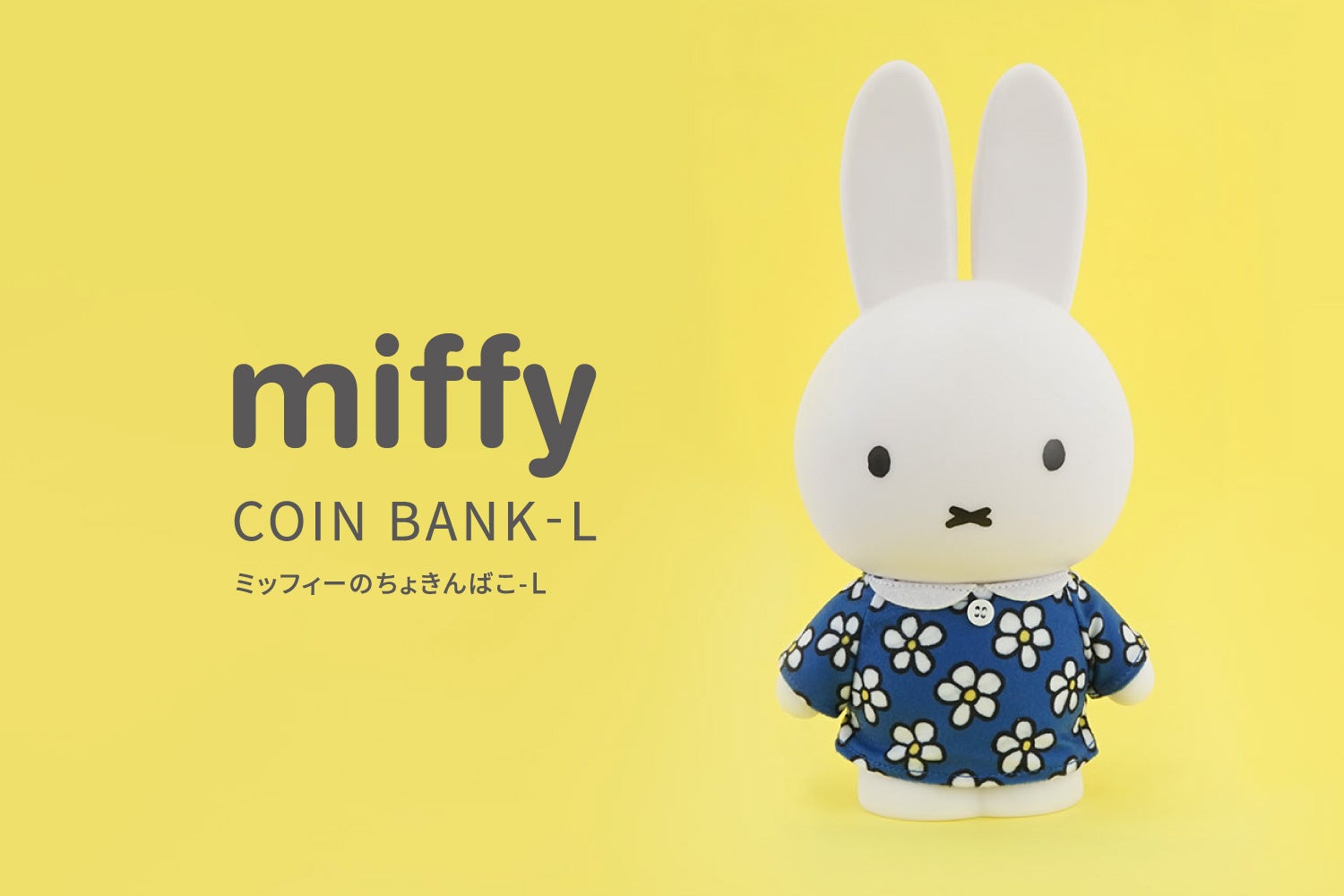 存在感抜群の全高約26cmのかわいいミッフィーが、ちょきんばこで仲間入り!首と腕が可動するので、ポージングもOK。着せ替え可能なかわいいお花柄ドレスを着た、素敵な貯金箱になりました。