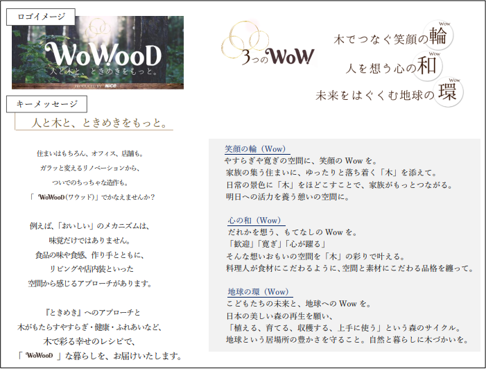 「WoWooDTM」のキーメッセージは、「人と木と、ときめきをもっと。」