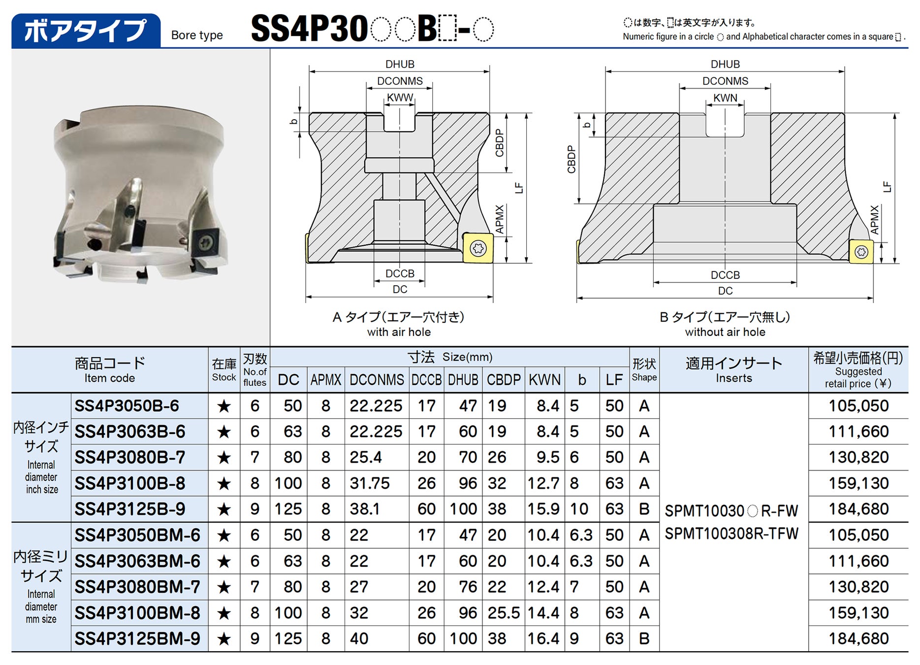 汎用/刃先強化タイプの2種類のインサートをラインナップしています。