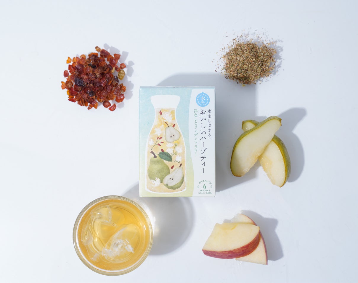 洋なしとリンデンフラワーなどをブレンドしたハーブティー。洋なしの瑞々しく甘い香りがふわりと広がります。