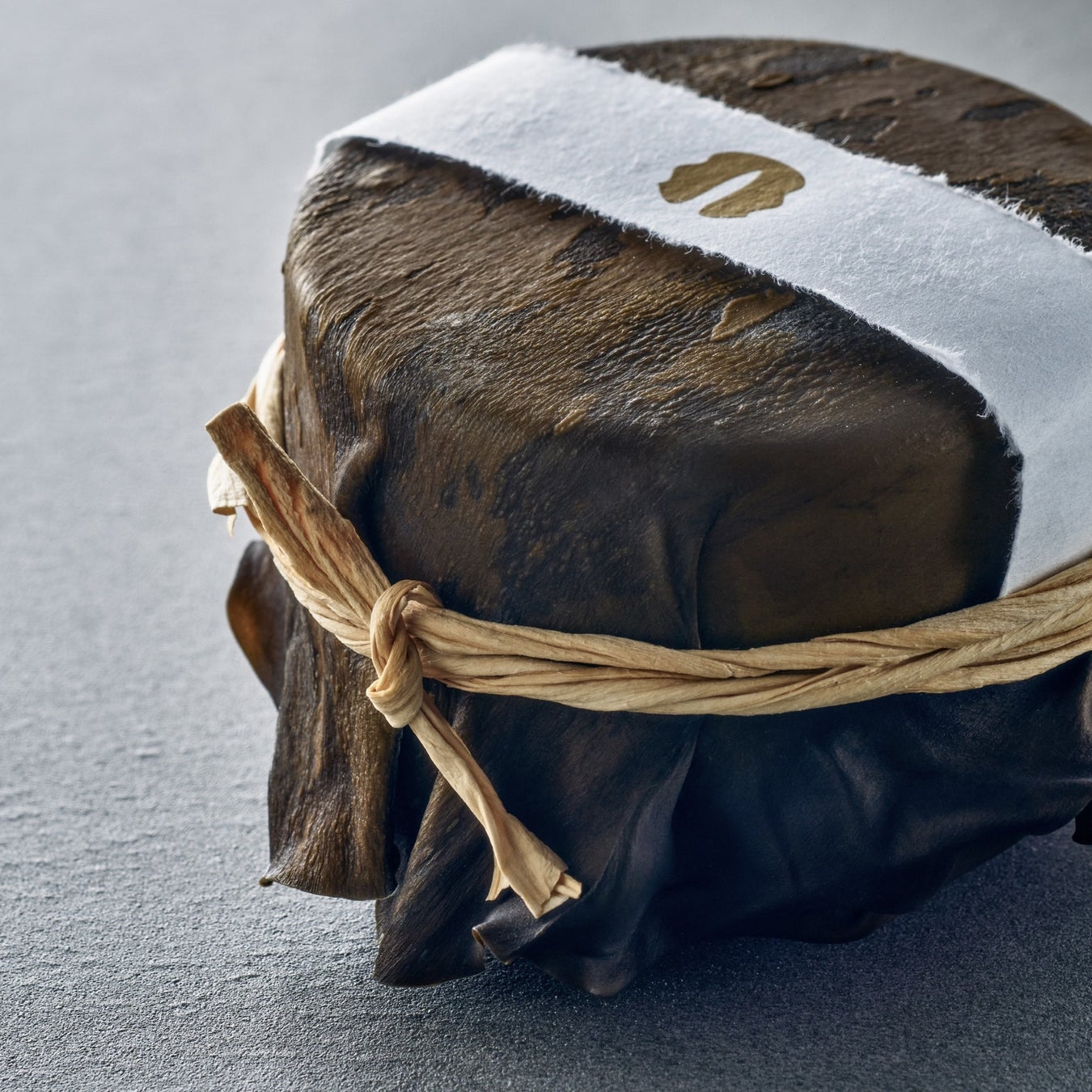 今回の制作にあたり、昆布を水に浸すことでなめし革のような成形が可能だと発見。昆布のみで作られた外装は自然が生み出した力強く美しいテクスチャを纏っています。容器は全てが食べられる素材でできており、環境への影響を最小限に抑えることも意図しました。日本の伝統的な食材の新しい使い方を探求し、持続可能な未来を考えました。