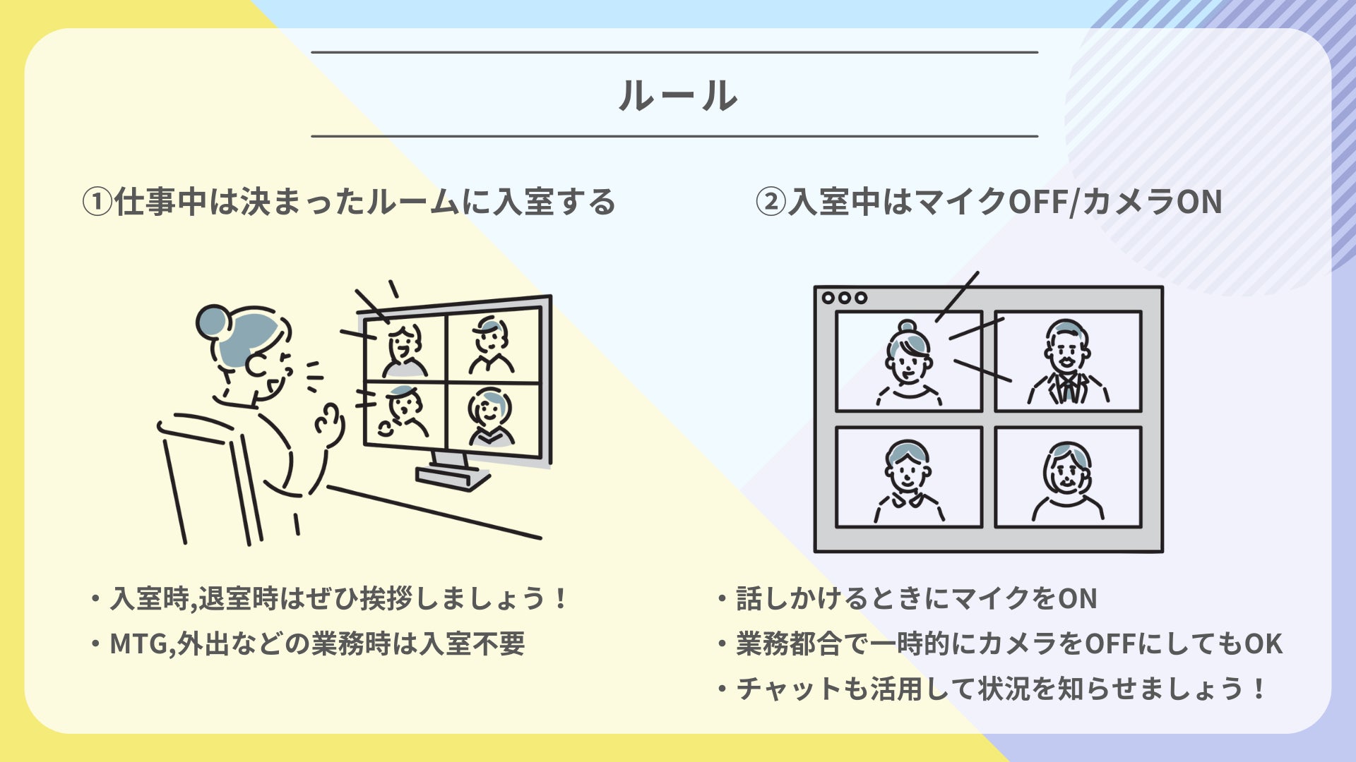 ▲オンライン会議ツールの常時接続に関する社内説明資料(一部抜粋)