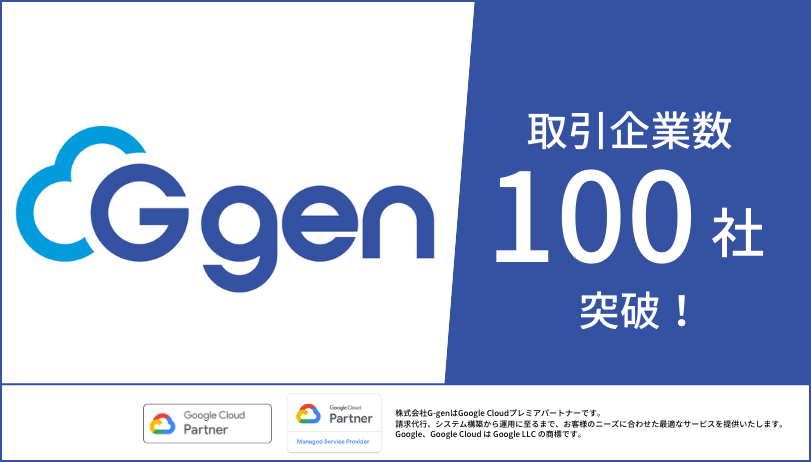 株式会社G-gen(本社:東京都新宿区、代表取締役:羽柴孝)は、2022年10月18日時点の取引企業数が100社を突破いたしました。