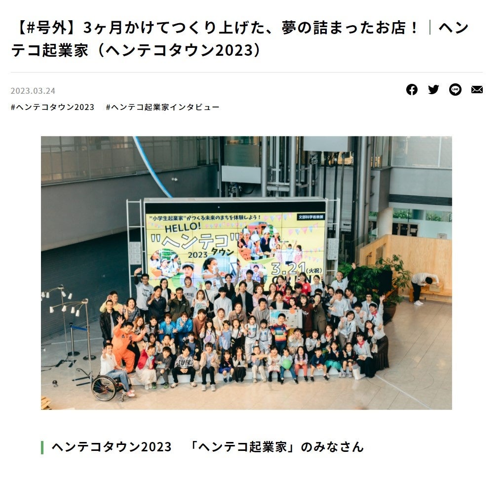 23名の小学生(ヘンテコ起業家)が3か月間かけて夢を描き、夢を実現するプロジェクト。