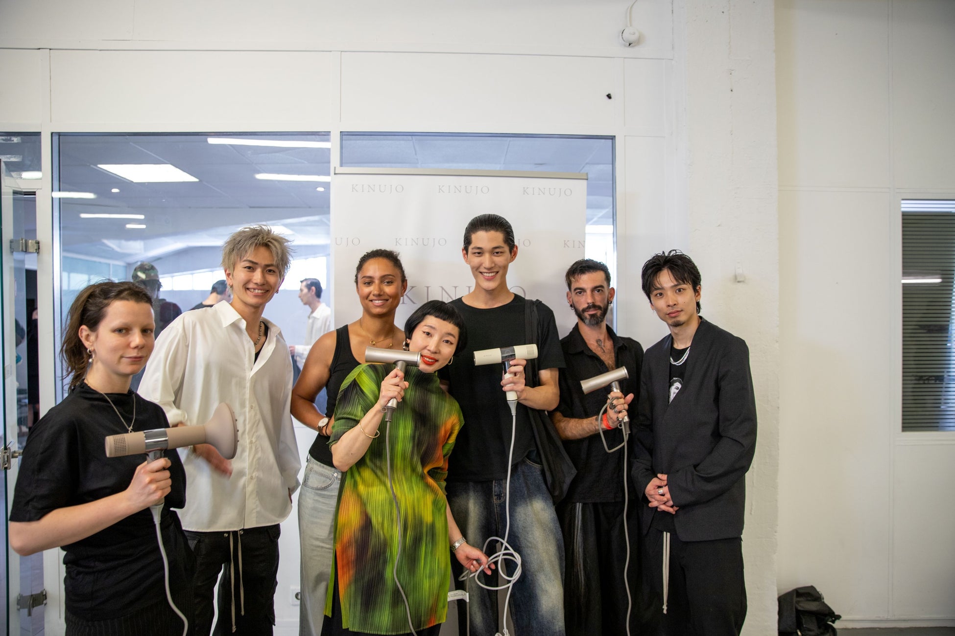 Key Hair Stylistの森本 麻優氏は長年拠点をフランス・パリに置き、活躍する正真正銘のプロフェッショナル。いくつものショーの舞台裏で責任者を務める彼女からの要望を受け、バックステージには、「KINUJO Hair Dryer」、「KINUJO Hair Dryer VOYAGE」「KINUJO MINI IRON -deux-」、「KINUJO W -worldwide model-」を提供。軽量なのにハイパワーでスタイリングが効率化できると好評をいただきました。